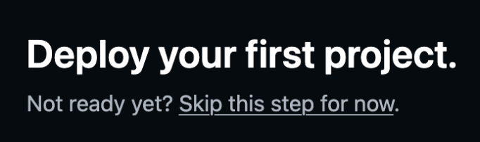 * Kies "Skip this step for now" in de laatste stap om door te gaan naar het dashboard.