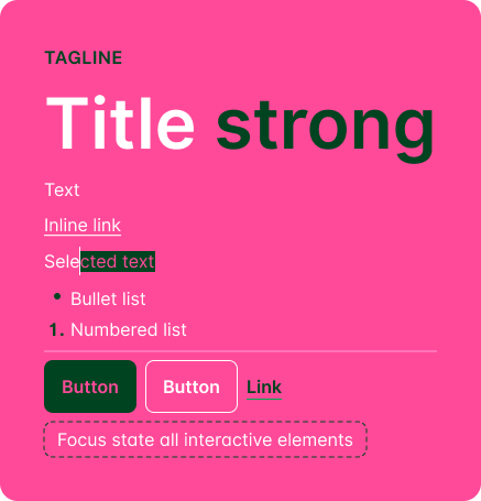 vb: Zwarte achtergrond → accent altijd paars, niet soms eens roze