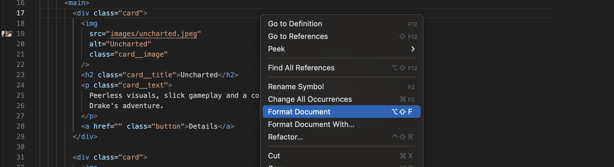 - De eerste keer na installatie moet nog eens manueel formatten via rechtermuisknop > format document