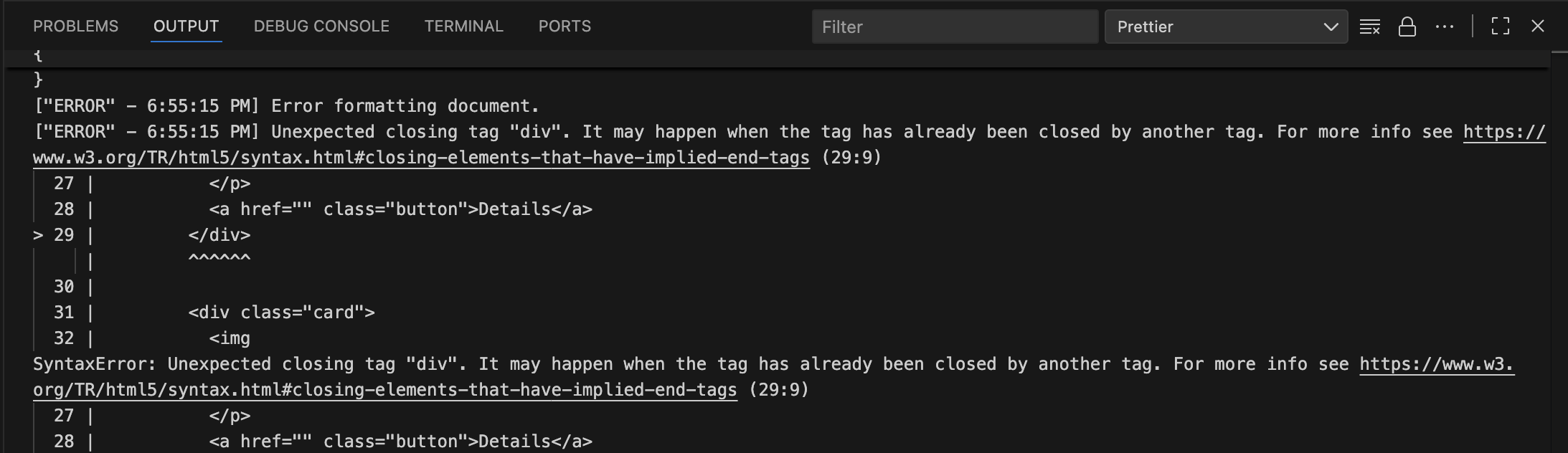 Deze extentie toont je ook wanneer je een fout hebt staan in je code, bijv. een tag die niet gesloten werd of een dubbele tag