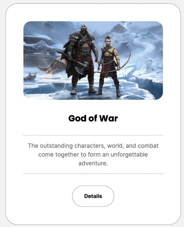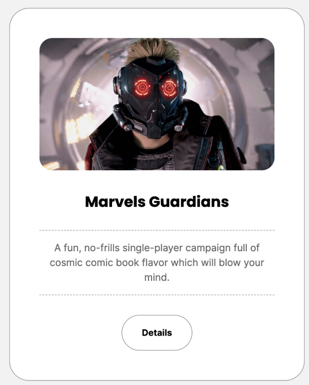 <p class="card__text"> Peerless visuals, slick gameplay </p>