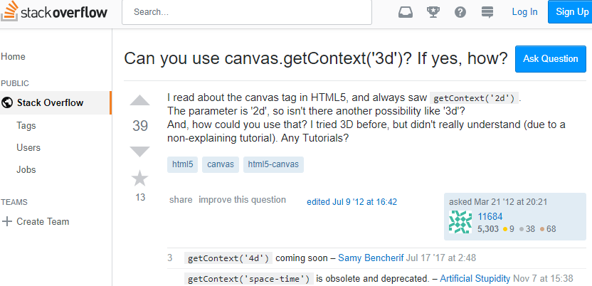 var canvas = document.getElementById('myCanvas');var context = canvas.getContext("2d");canvas의 rendering context를 가져옵니다. 2d로