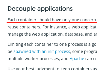 - 공식문서에 의하면 "컨테이너는 하나의 관심사에만 집중해야한다" 라는 입장을 밝히고 있다.