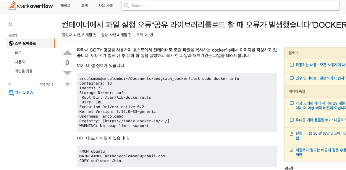 - Host 또는 컨테이너 내의 디스크에서 데이터가가 유지되지 않습니다.