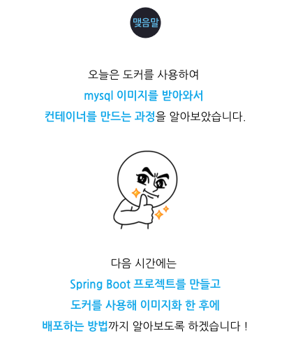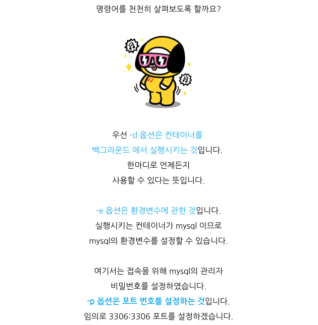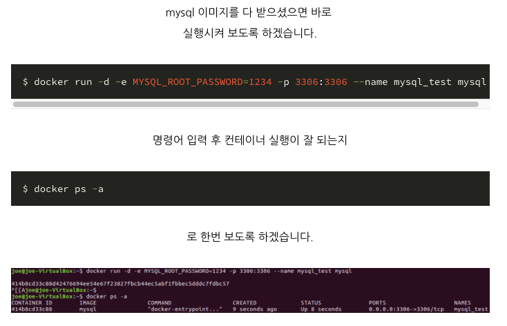 $ docker run -d -e MYSQL_ROOT_PASSWORD=1234 -p 3306:3306 --name mysql_test mysql