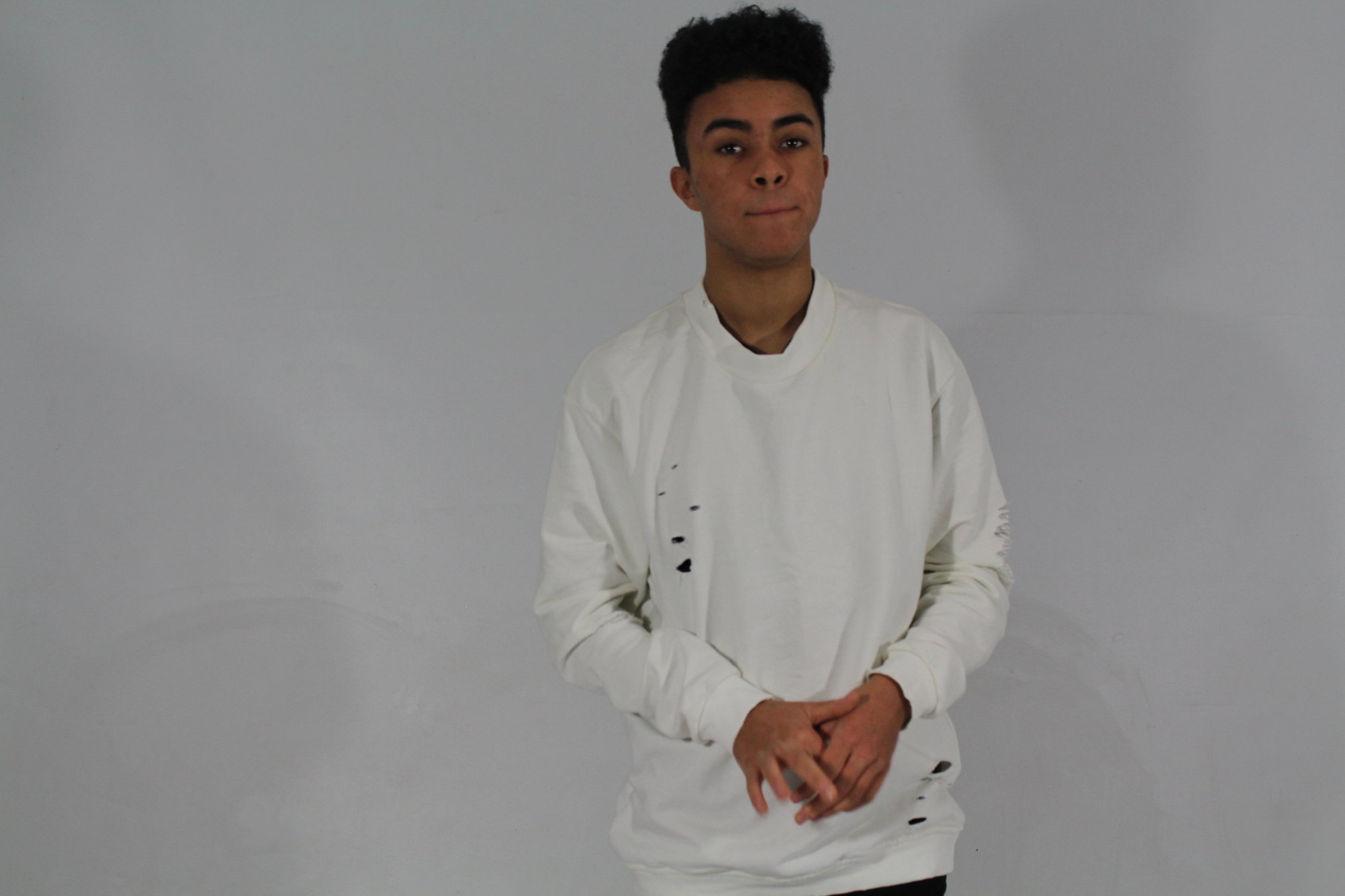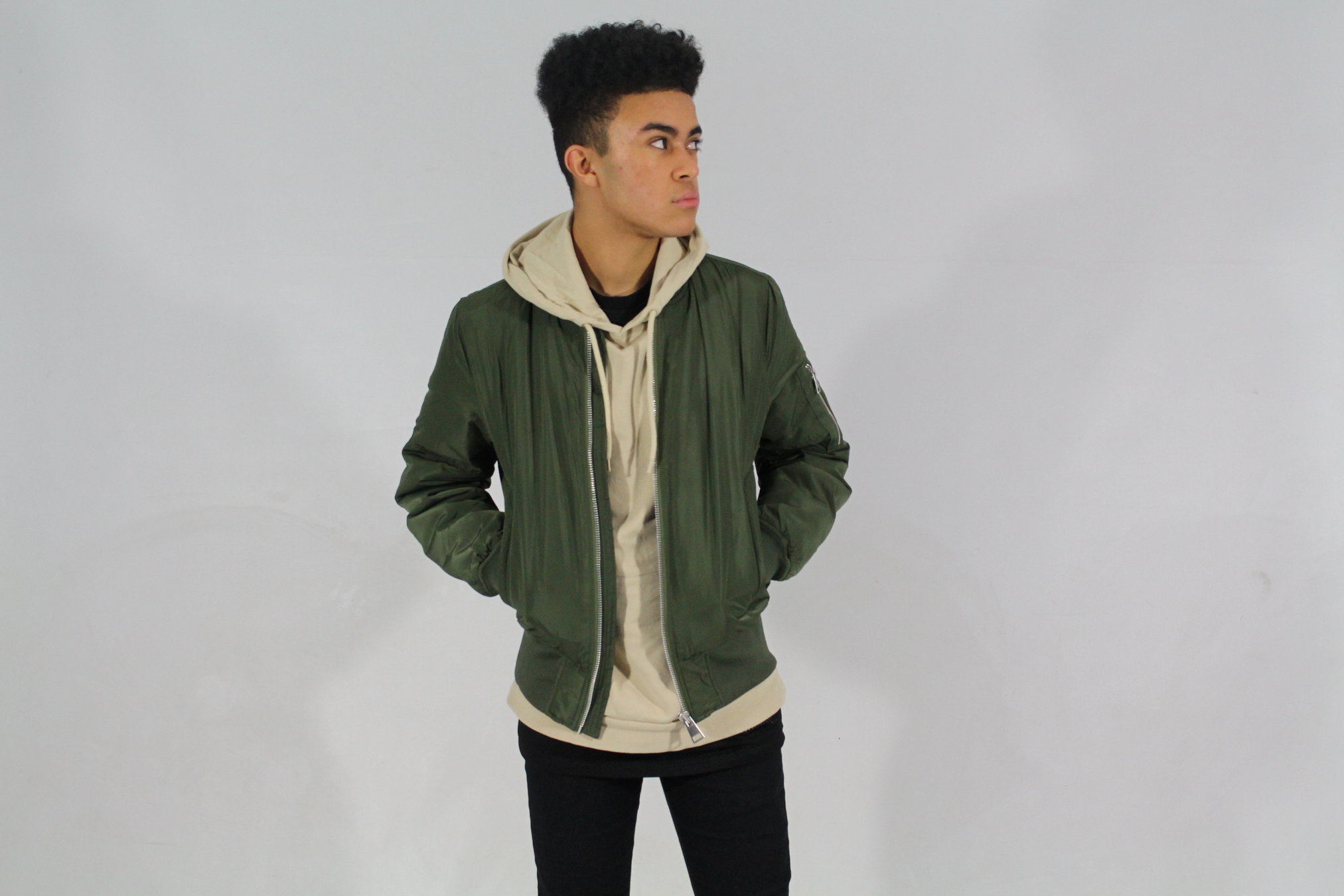 The clothes that the models are wearing have an element of edge to them. Bomber jackets have been a huge hit in the fashion industry and pairing it with a beige hoodie like James has done gives the outfit edge. I chose to have the same outfit on my front cover and my double page spread as it showed the link between them and kept the theme running through the whole of the magazine.