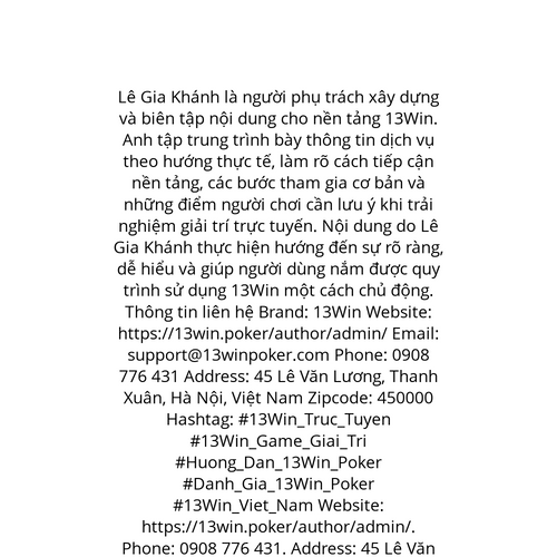 Website: https://13win.poker/author/admin/. Lê Gia Khánh là người phụ trách xây dựng và biên tập nội dung cho nền tảng 13Win. Anh tập trung trình bày thông tin dịch vụ theo hướng thực tế, làm rõ cách tiếp cận nền tảng, các bước tham gia cơ bản và nhữ