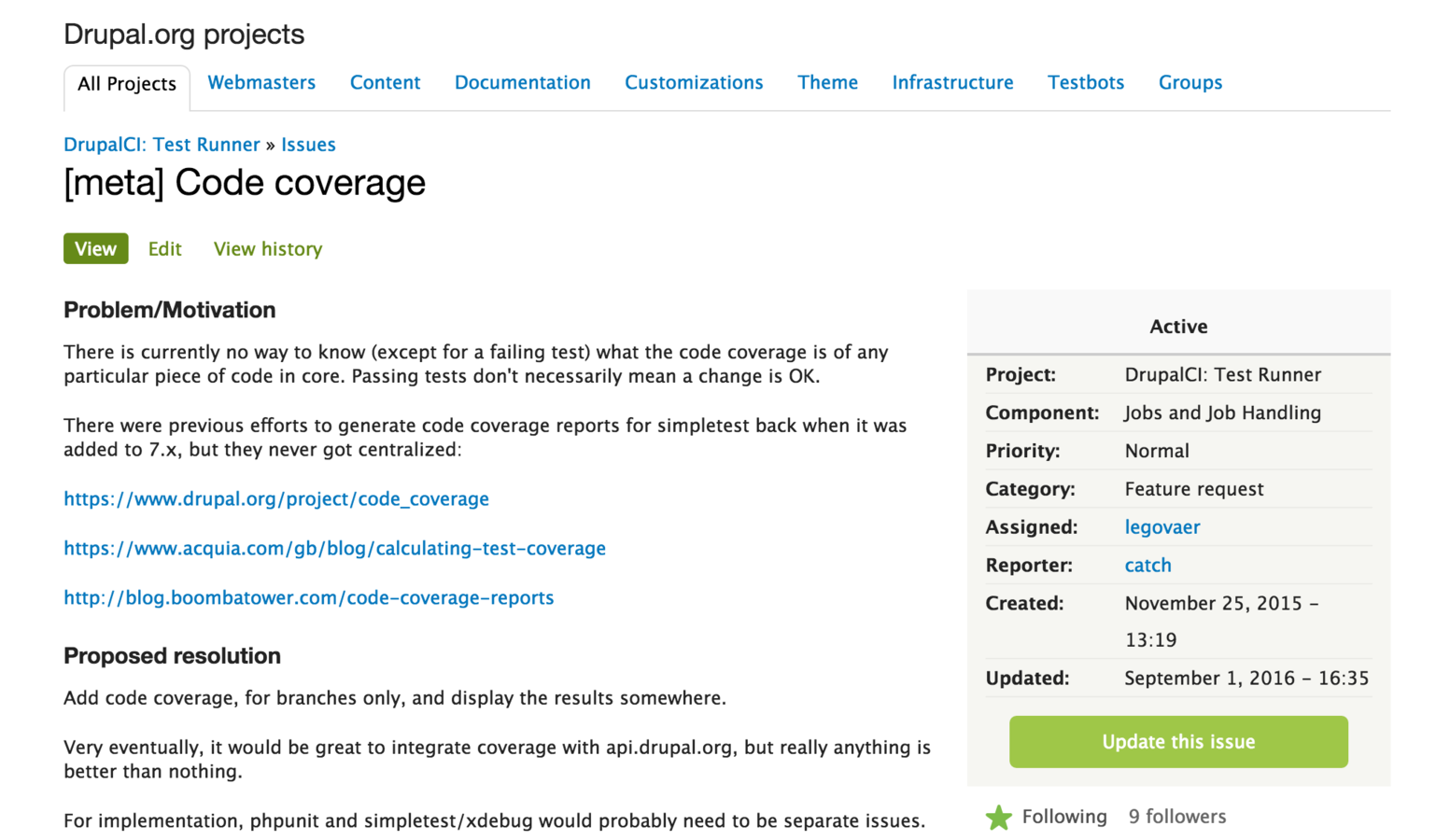 Integration with coveralls.io / drupal.org
