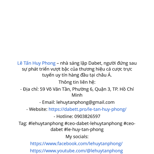 Lê Tấn Huy Phong – nhà sáng lập Dabet, người đứng sau sự phát triển vượt bậc của thương hiệu cá cược trực tuyến uy tín hàng đầu tại châu Á. - Website: https://dabett.pro/le-tan-huy-phong/