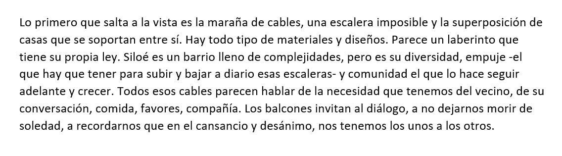 Realiza un fotorreportaje de tu barrio. Debes armar una secuencia de 5 fotos. Cada una debe evidenciar una composición e intención subjetiva de tu parte. Luego, realiza un texto narrativo-descriptivo de una de las fotografías.