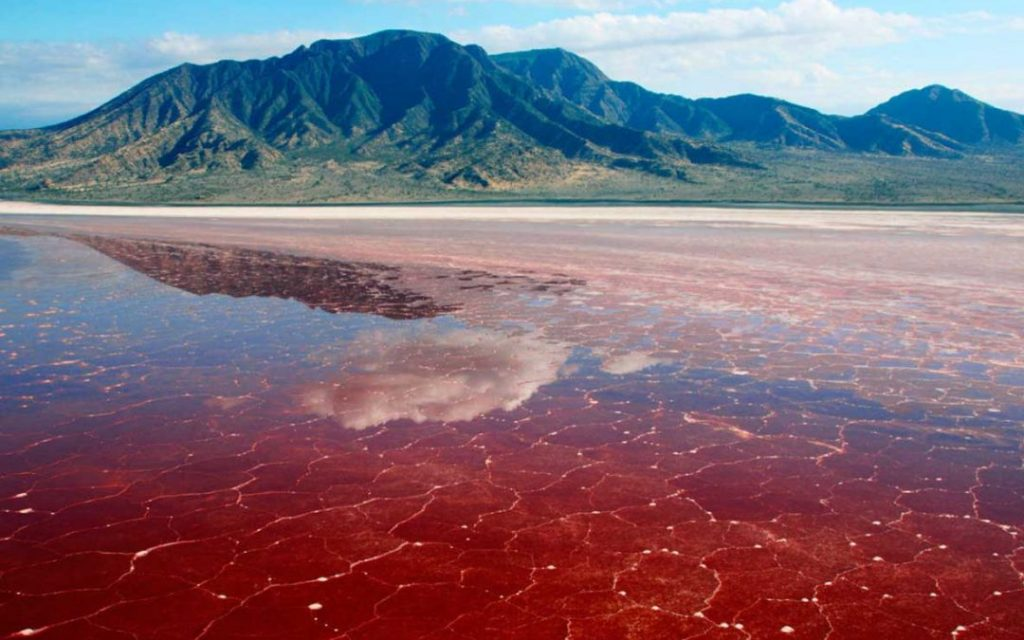 Observa las siguientes imágenes del lago Natrón de Tanzania.