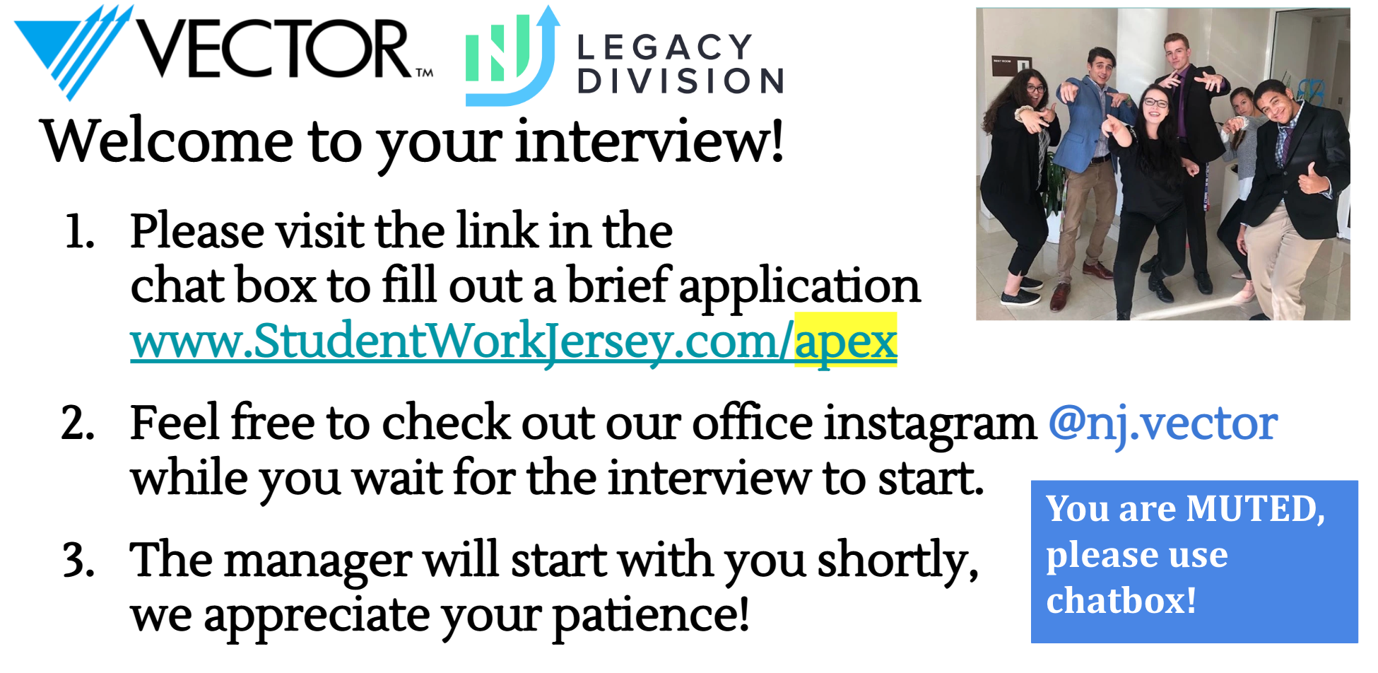 A manager will pull you into a breakout room to answer any questions and give you a decision if we believe we would be a good fit to work together.