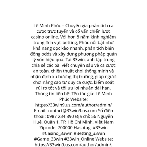 Website: https://33win9.us.com/author/admin/. Lê Minh Phúc – Chuyên gia phân tích ca cược trực tuyến và cố vấn chiến lược casino online. Với hơn 8 năm kinh nghiệm trong lĩnh vực betting, Phúc nổi bật nhờ khả năng đọc kèo nhanh, phân tích biến động od