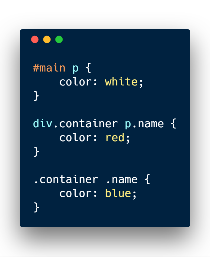 "Start at 0, add 1000 for style attribute, add 100 for each ID, add 10 for each attribute, class or pseudo-class, add 1 for each element name or pseudo-element." w3schools