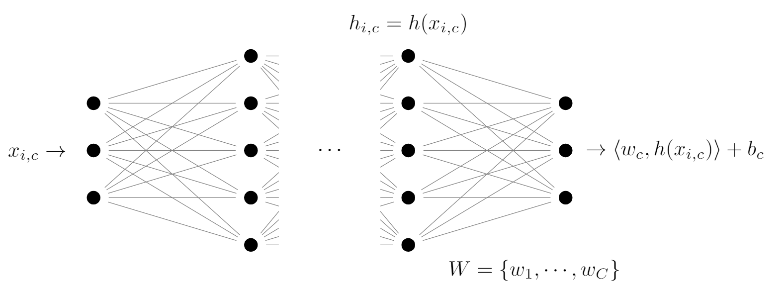 Net classifier: \(\argmax_c\langle w_c, h(x)\rangle + b_c\)