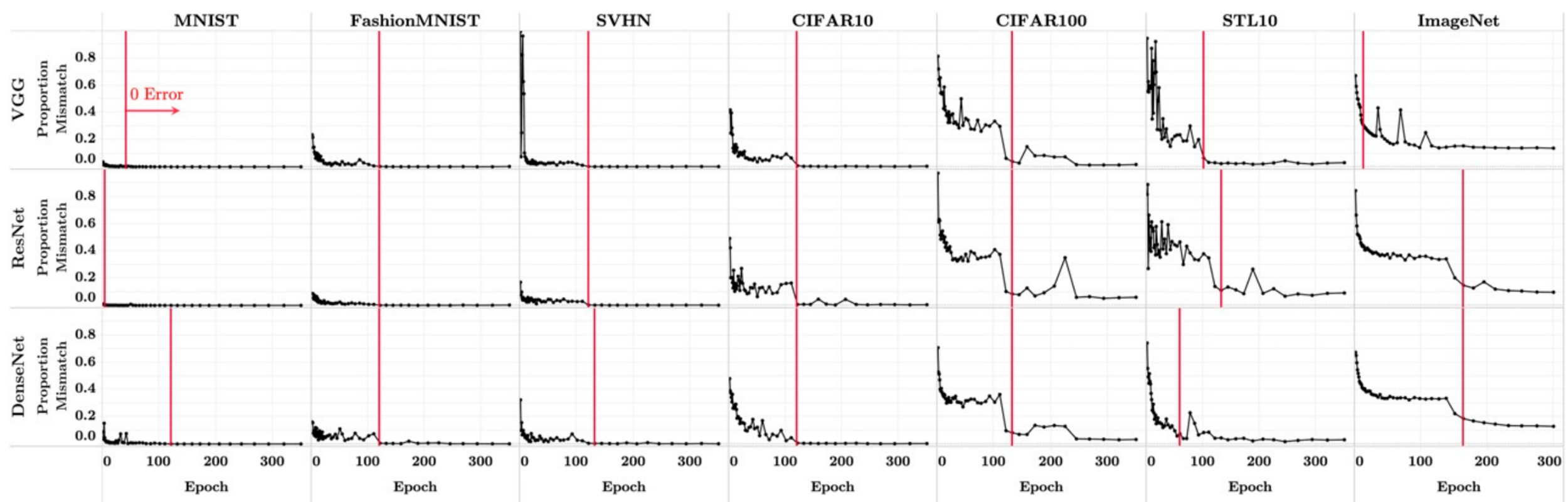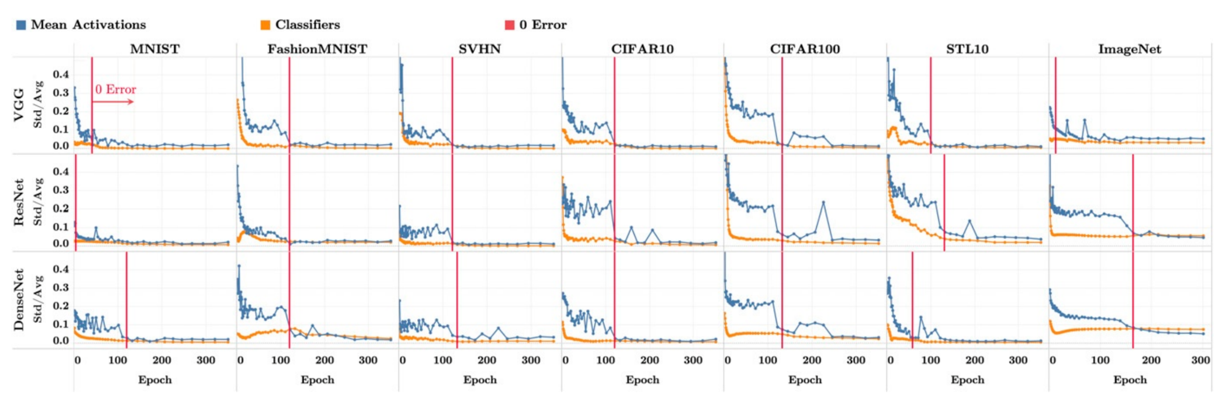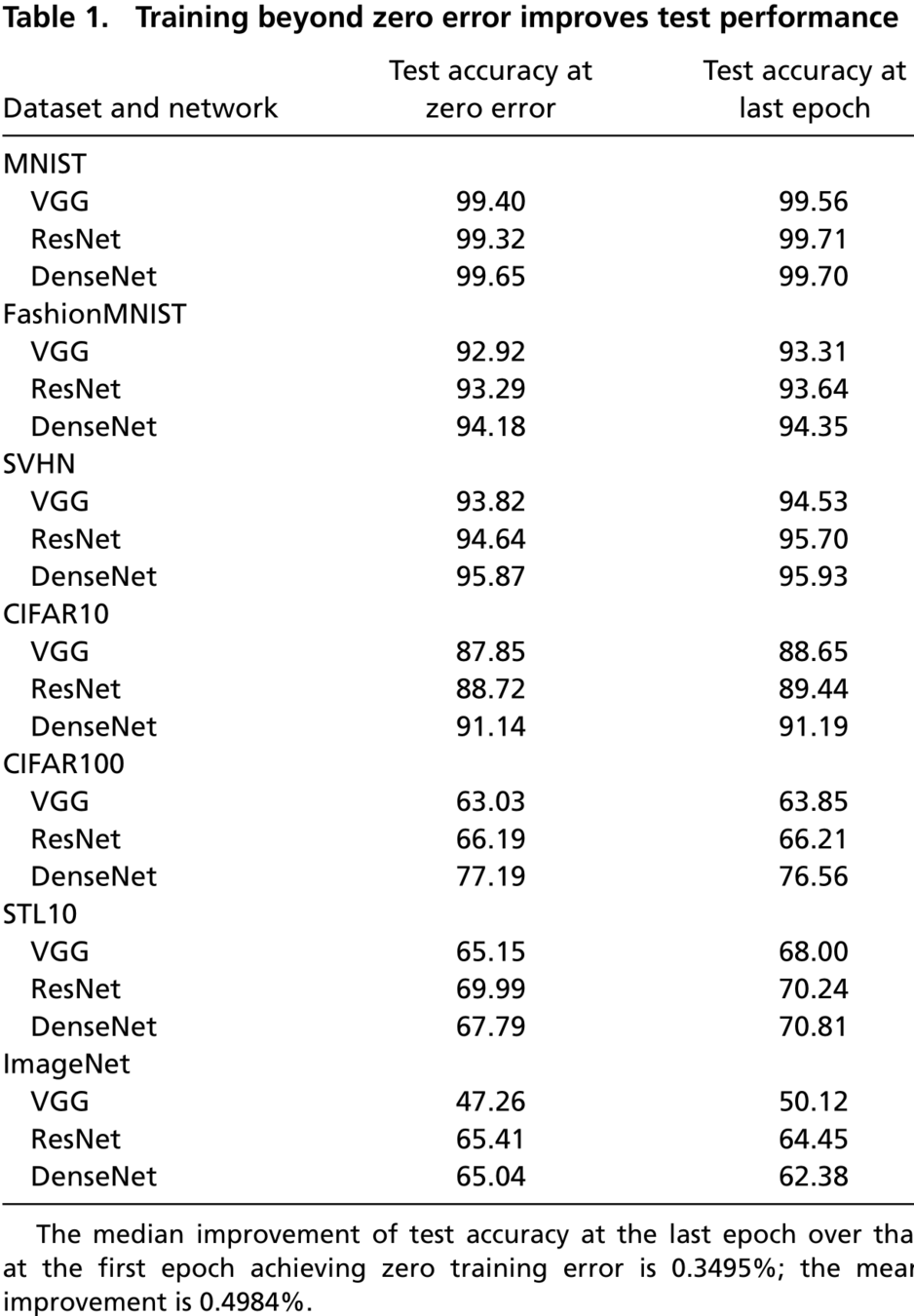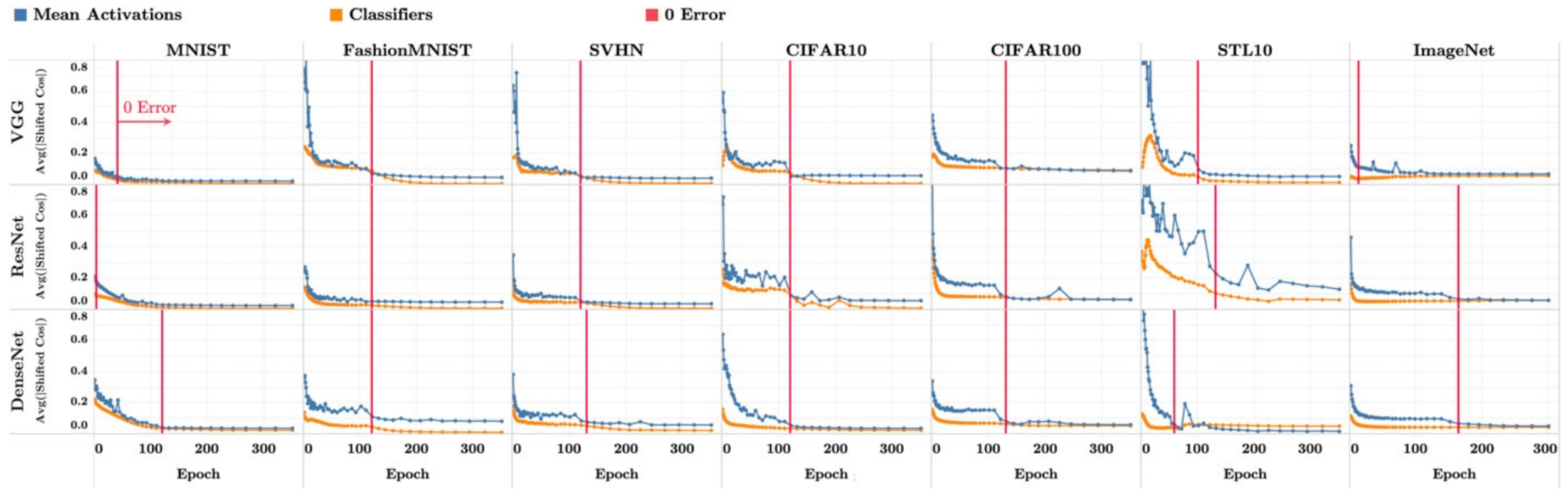 A net trained past \(\epsilon_\text{train} = 0\), while \(\mathcal{L}(\text{train-set}) \to 0\) frequently induces neural collapse (NC).