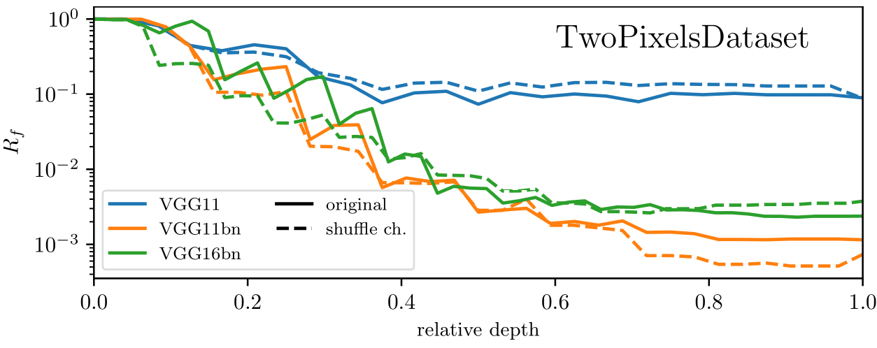 As expected, channel pooling is not present (i.e. shuffling channels has no effect in terms of relative stability).