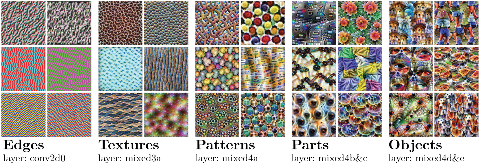 Figure: inputs that maximally activate neurons at a given layer: