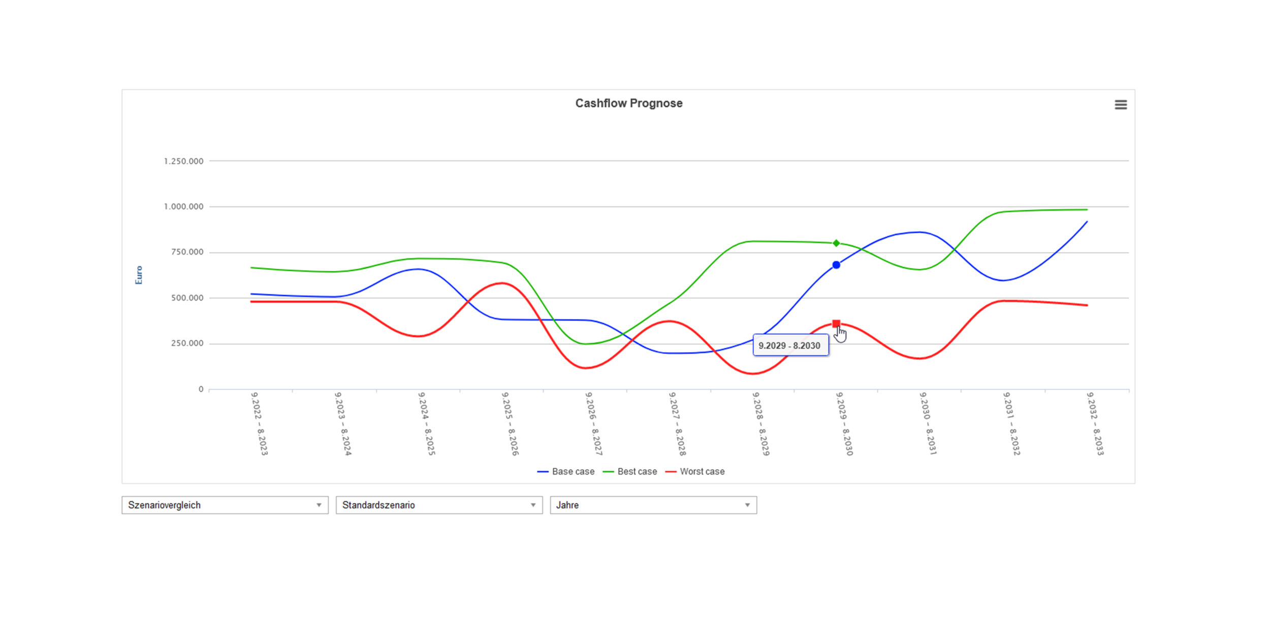 ICRS kann alle Ihre Finanzdaten zusammenfassen, um Ihren zukünftigen Cashflow zu prognostizieren.