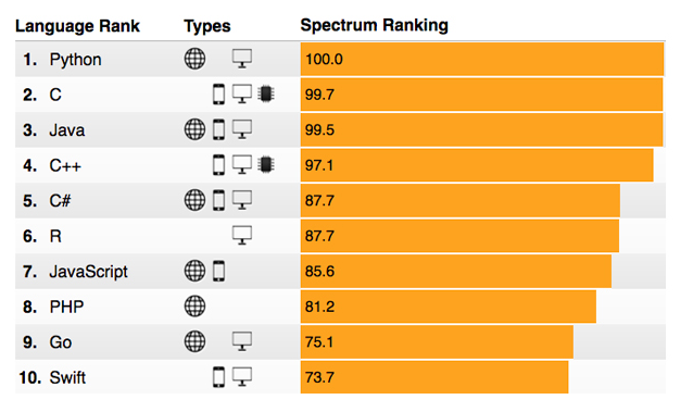 最受歡迎的程式語言 2017