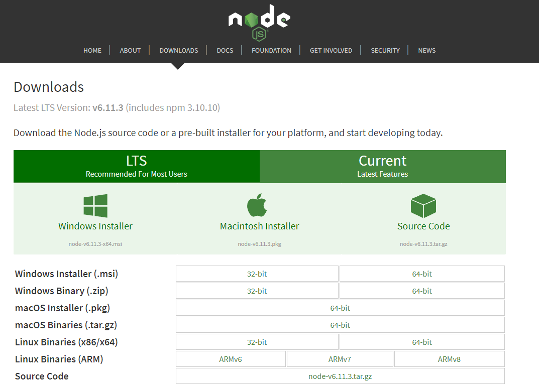 最新版本(LTS):14.18.0( npm 6.14.15) 2021/10/2