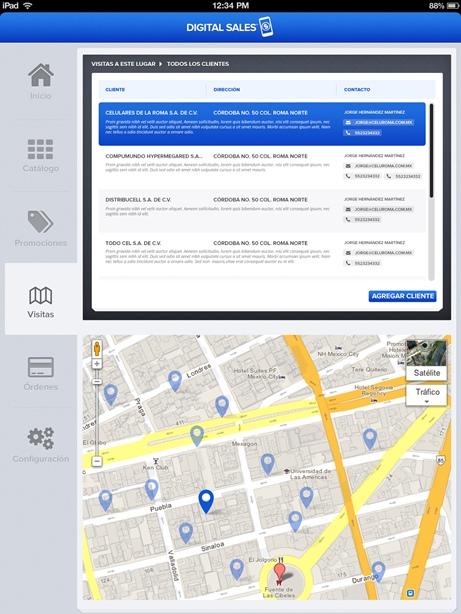 Cada representante de ventas contará con una iPad que servirá como plataforma de ejecución de la aplicación móvil, y le dará el uso anteriormente mencionado.