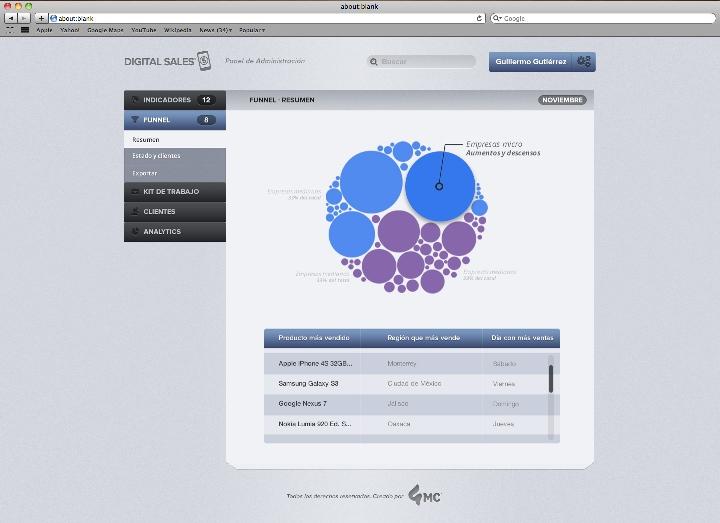 A partir de los reportes y/o gráficos generados desde la web app se podrá tener un mejor panorama de la fuerza de venta de la empresa y así el sistema ayudará en la mejor toma de decisiones corporativas.