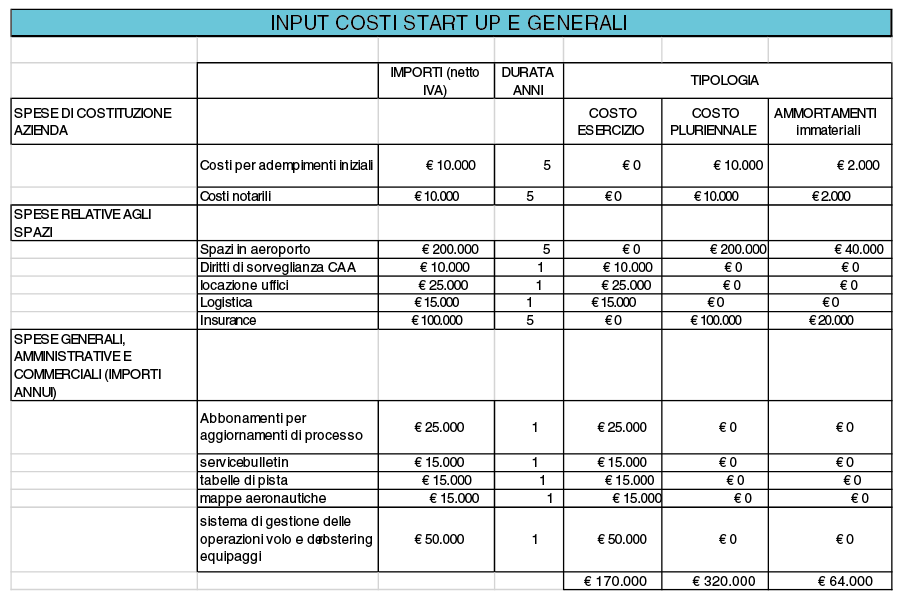 Inoltre, se è vero che nessuno di questi costi è evitabile per l’avvio dell’attività, è altrettanto vero che per alcuni di essi, nel corso del tempo, sarà possibile una rimodulazione sia per quanto riguarda il valore complessivo (per esempio ipotizzando partnership con vettori competitors, o tramite accordi di natura commerciale con gli hub di riferimento presso i quali si ha intenzione di avviare i voli) sia ipotizzando la possibilità di esternalizzare a società di servizi, tramite relativi contratti di servizio o di global service (per esempio tutti i costi relativi all’ICT tecnica della compagnia ed ai relativi upgrade).