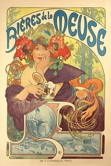 WAAROM > 1896 - massaproductie: behoefte aan reclame (I.R.). > Alphonse Mucha: Tsjechische illustrator > Concept: verleidelijke vrouw, verbonden met product. > Inspiratie: 'einde van de eeuw'-vibe: enthousiasme; vrijheid; Art Nouveau.