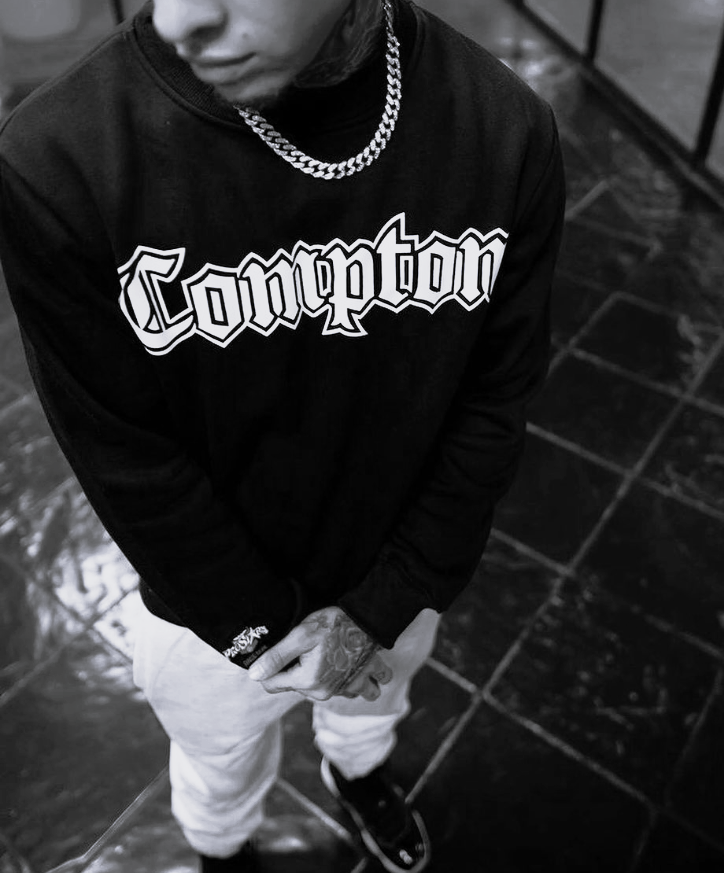 Wearing 'gloomy' pale and heavy black eye make-up & fingernail polish, Victorian/dark fashion (19th century) and a distinctive hairstyle. > goth(ic) subculture.