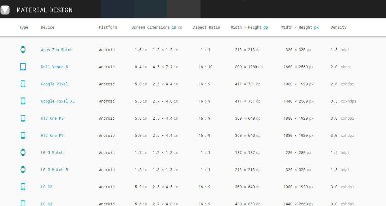 再来看看一个移动端页面要适配的终端设备数据: