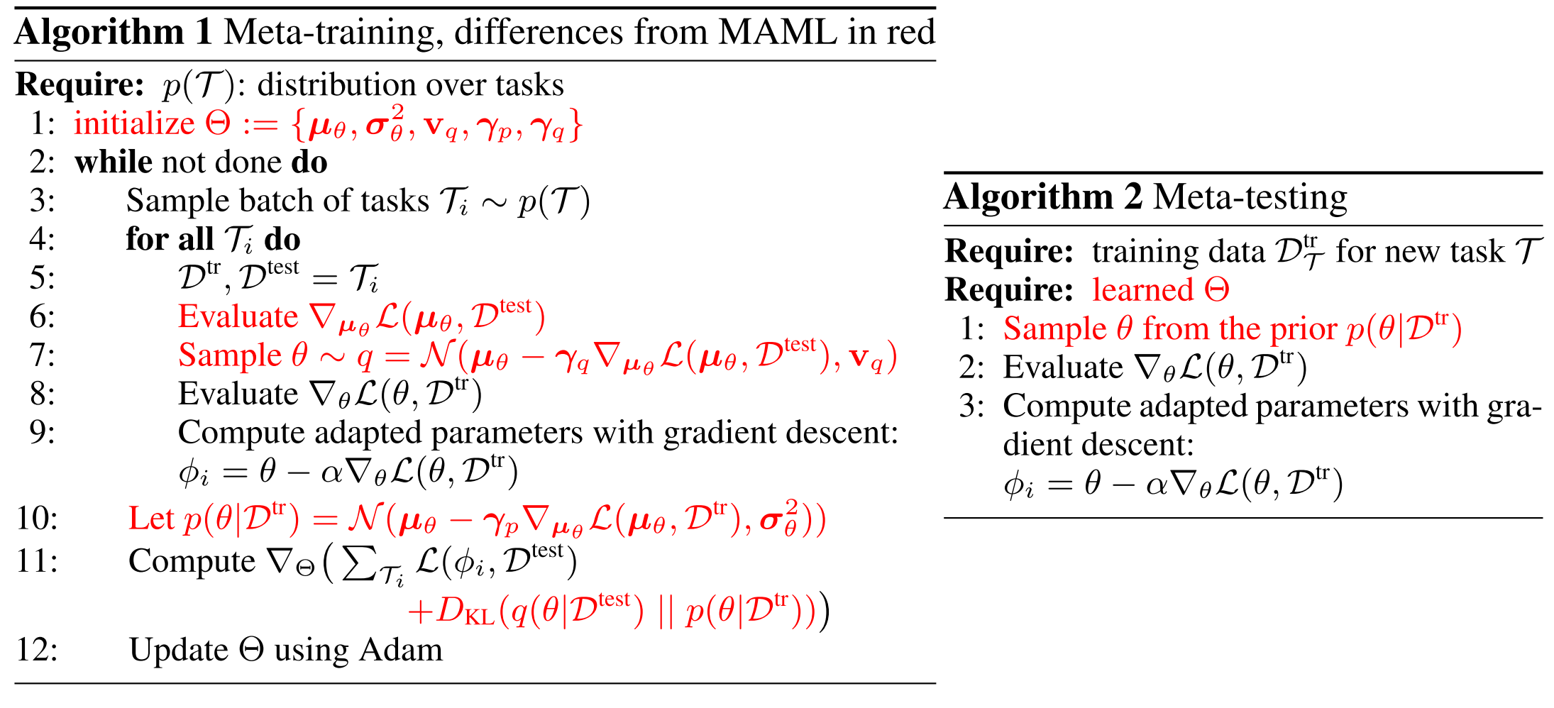 Finn C, Xu K, Levine S. Probabilistic model-agnostic meta-learning. In Advances in Neural Information Processing Systems 2018 (pp. 9537-9548).