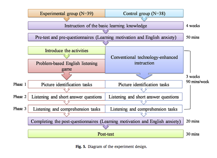 Hwang, G. J., Hsu, T. C., Lai, C. L., & Hsueh, C. J. (2017). Interaction of problem-based gaming and learning anxiety in EFL students' English listening performance and progressive behavioral patterns. Computers & Education, 106, 26-42.