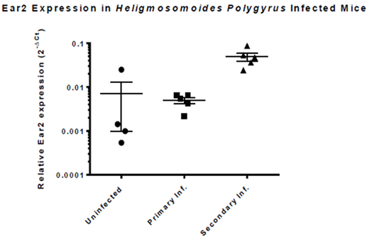 -During secondary infection of H. Polygyrus, Ear2 expression is highly upregulated.