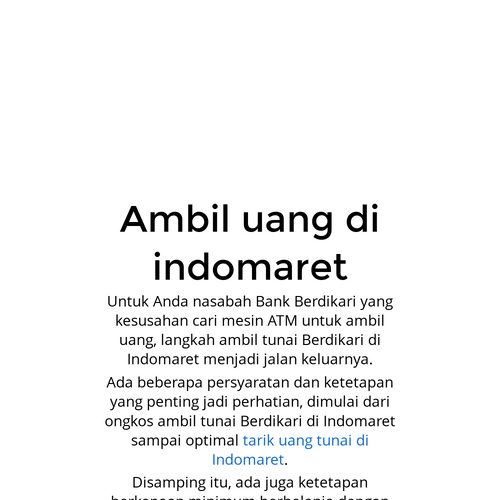 Untuk Anda nasabah Bank Berdikari yang kesusahan cari mesin ATM untuk ambil uang, langkah ambil tunai Berdikari di Indomaret menjadi jalan keluarnya. Ada beberapa persyaratan dan ketetapan yang penting jadi perhatian, dimulai dari ongkos ambil tunai Berdikari di Indomaret sampai optimal ambil tunai di Indomaret. Disamping itu, ada juga ketetapan berkenaan minimum berbelanja dengan nominal tertentu saat sebelum lakukan penarikan tunai di Indomaret. Tarik tunai di Indomaret Lalu, ambil tunai Berdikari di Indomaret minimum berbelanja berapakah? Ambil tunai di Indomaret terkena ongkos berapakah? Artikel ini akan memberi pembahasan tentang itu yang diringkas dari situs sah dan beberapa account sosial media Indomaret. Langkah ambil tunai Berdikari di Indomaret Nasabah Bank Berdikari yang lakukan transaksi bisnis ambil tunai dengan memakai kartu debet Berdikari di Indomaret dapat ikuti panduan seperti berikut: Nasabah Bank Berdikari tiba ke toko Indomaret Kerjakan pembelian sama sesuai ketetapan minimum berbelanja untuk ambil tunai Berdikari Membayar di kasir dan berikan arah akan lakukan penarikan tunai memakai kartu ATM Berdikari Berikan nominal penarikan tunai, misalkan sejumlah Rp 100.000 Petugas kasir Indomaret menginput nominal penarikan Rp 100.000 di mekanisme POS Indomaret Keseluruhan nominal pembayaran yang perlu dibayarkan nasabah lewat transaksi bisnis EDC ialah Rp 100.000 ditambahkan ongkos admin dan pembayaran berbelanja Nasabah menggesek kartu debet Berdikari dan input PIN di EDC untuk proses pembayaran keseluruhan sama sesuai nominal yang diharapkan Sesudah transaksi bisnis sukses, petugas kasir Indomaret memberikan uang kontan Rp 100.000 ke nasabah dan barang berbelanja yang sudah dibayarkan Transaksi bisnis ambil tunai Berdikari di Indomaret usai www.linkita.id Persyaratan dan ongkos ambil tunai Berdikari di Indomaret Ambil tunai Berdikari di Indomaret minimum berbelanja berapakah? Ambil tunai di Indomaret terkena ongkos berapakah? Baca pembahasan secara lengkap di bawah ini. Minimum penarikan tunai lewat toko cabang Indomaret ialah Rp 50.000. Dan optimal ambil tunai di Indomaret yakni Rp 1 juta, dengan kelipatan penarikan Rp 50.000. Adapun ongkos ambil tunai Berdikari di Indomaret ialah Rp 4.000 per transaksi bisnis. Peralihan ongkos administrasi ini bisa berbeda sesuai peraturan Bank Berdikari. Dalam pada itu, www.digtif.com langkah ambil tunai Berdikari di Indomaret cuma dapat dilaksanakan dengan lakukan pembelian dengan minimum berbelanja Rp 20.000. Tersebut ketetapan berkenaan ambil tunai Berdikari di Indomaret. Ketetapan itu dapat berbeda setiap saat bergantung pada peraturan Indomaret dan Bank Berdikari.
