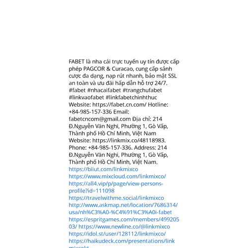 Website: https://linkmix.co/48118983. FABET là nha cái trực tuyến uy tín được cấp phép PAGCOR & Curacao, cung cấp sảnh cược đa dạng, nạp rút nhanh, bảo mật SSL an toàn và ưu đãi hấp dẫn hỗ trợ 24/7. #fabet #nhacaifabet #trangchufabet #linkvaofabe