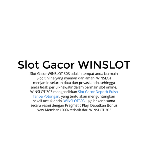 Link Winslot 303 adalah situs Slot Online Gacor dan Terpercaya Mitra Resmi dari Pragmatic dan Menggunakan Engine Terbaik Nexus. Nikmati Bermain Slot Gacor Deposit Pulsa Tanpa Potongan Sama Sekali. 5 Daftar Slot Gacor Hari Ini 2022 1. Slot Gacor Online Pragmatic Play 2. Slot Online Gacor PGSoft 2022 3. Slot Online Terpercaya Habanero 2022 4. Slot Gacor Terpercaya CQ9 5. Slot Gacor 2022 Pragmatic Play Itulah 5 Link Winslot303 Gacor dan Terpercaya. Dapatkan Berbagai Bonus anda sekarang juga Daftar dan Raih Jackpot anda!