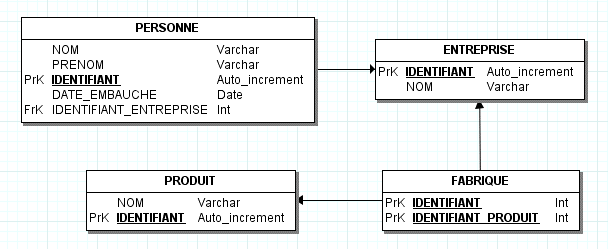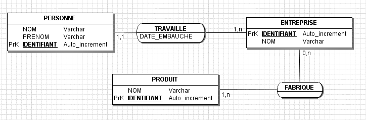 La relation entre l'entité ENTREPRISE et PERSONNE a une cardinalité de 1-N :