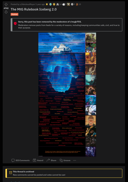 É completamente possível jogar magic sem conhecer nem mil cartas e sem sequer ter lido um único parágrafo do livro de regras. Mas Magic vai além. Hoje trouxemos o Iceberg das Regras Abrangentes de Magic para debater regras importantes e menos familiares.