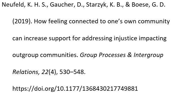 (Neufeld et al., 2019) in-text citation for work by K.H.S. Neufeld, D. Gaucher, K.B. Starzyk, G.D. Boese.