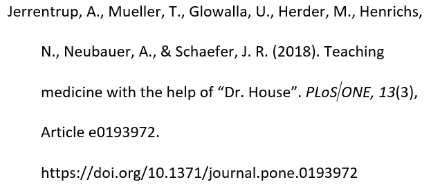 - article number: include article number if provided instead of page ranges. Ex. Article e0193972