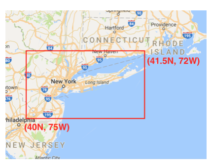 Data, one-hour time window, and location within NYC