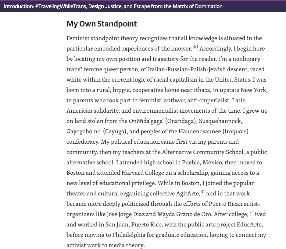 Related to the idea of situated knowledges, positionality is a way to describe someone's position in society and their position in relation to others.