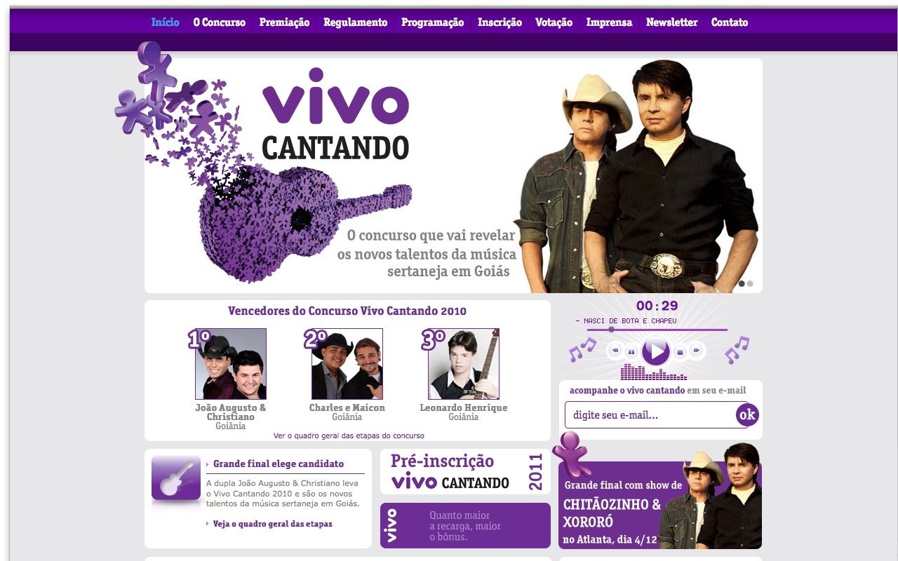 Vivo Cantando desenvolvido em conjunto com a Cannes Publicidade e Mix Marketing