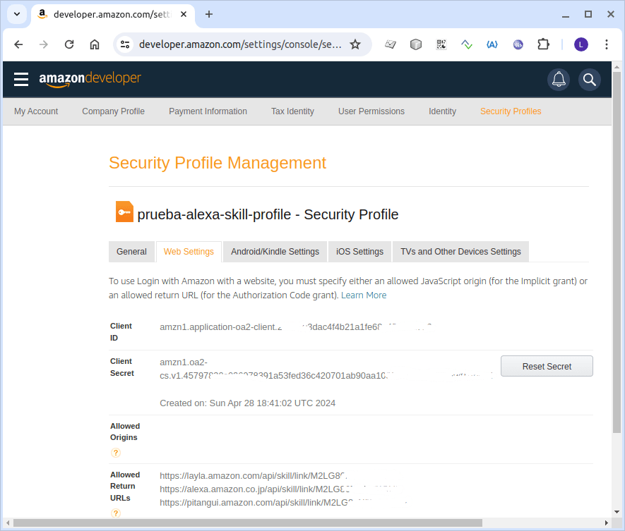 y poner los datos del "Security Profile" y viceversa