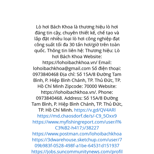 Website: https://lohoibachkhoa.vn/. Lò hơi Bách Khoa là đơn vị boiler chất lượng cao, chuyên thiết kế, chế tạo và lắp đặt nhiều loại lò hơi công nghiệp với công suất tối đa 30 tấn hơi/giờ trên toàn quốc. Thông tin liên hệ: Thương hiệu: Lò hơi Bách Kh