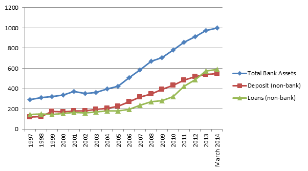 Source: MAS, Annual Report 2013/2014; Singapore Department of Statistics, Yearbook of Statistics, 2014