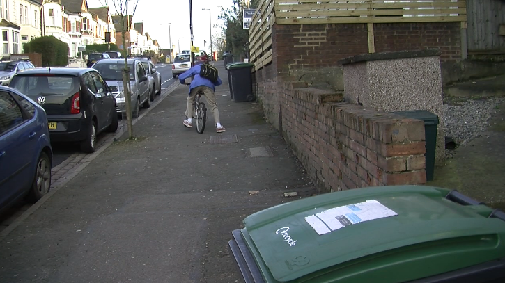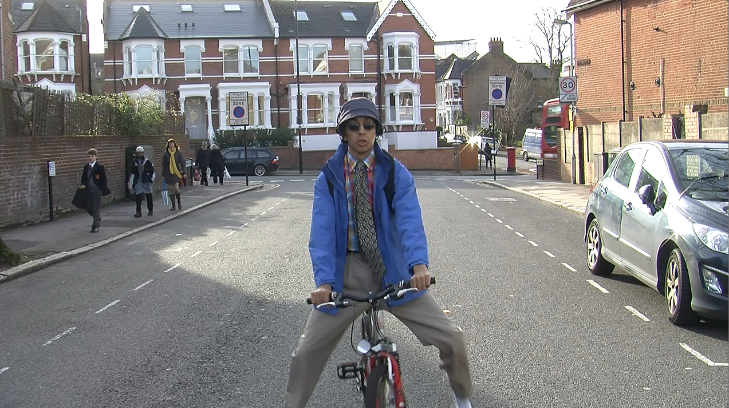 In terms of mise en scene, Reggie seems very determined to start riding the bike to go to school. His eager behaviour appeals to the 'nerdy' male teenage target audience as they enjoy the educational element of school, like Reggie, not the social aspects.