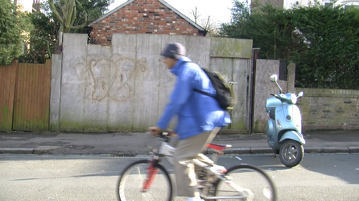 The motorbike in the background undermines Reggie's form of transport, minimising his character and making him seem more nerdy. However, a lot of young males ride their bikes to school, therefore they can relate to Reggie.
