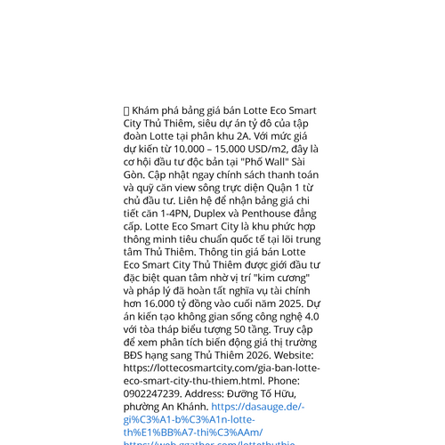 Website: https://lottecosmartcity.com/gia-ban-lotte-eco-smart-city-thu-thiem.html. ⭐️ Khám phá bảng giá bán Lotte Eco Smart City Thủ Thiêm, siêu dự án tỷ đô của tập đoàn Lotte tại phân khu 2A. Với mức giá dự kiến từ 10.000 – 15.000 USD/m2, đây là cơ